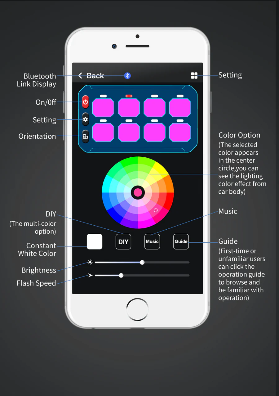 Introducing GGLighting’s RGB Bluetooth Switch Panel – a sleek and intuitive solution designed with user ease in mind. Effortlessly wire your accessories with bringing a new level of control and personalization to your vehicle. Experience simplicity and style seamlessly integrated into one sleek panel.